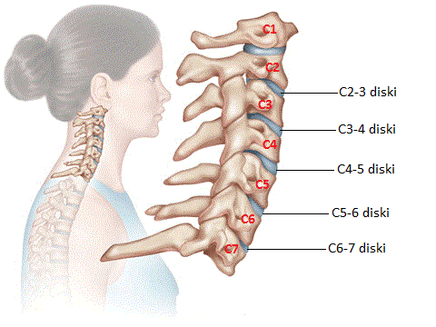 Disklerin ve dolayısıyla boyun fıtıklarının adlandırılmaları bulundukları omurların isimlerine göre yapılır (Resim 5). Vücudumuzda 7 adet boyun omuru vardır. Bunlar yukarıdan aşağıya; C1, C2, C3, C4, C5, C6, C7 olarak adlandırılmışlardır (C=Cervical). En alttaki boyun omurunu (C7) birinci torakal (sırt) omuru (T1) takip eder. Diskler hangi iki omur arasındaysalar o ismi alırlar (ör, C5-6 diski). Boyun fıtıkları da hangi diskten kaynaklanıyorlarsa ona göre adlandırılırlar (ör, C5-6 boyun fıtığı ya da C5-6 disk hernisi).